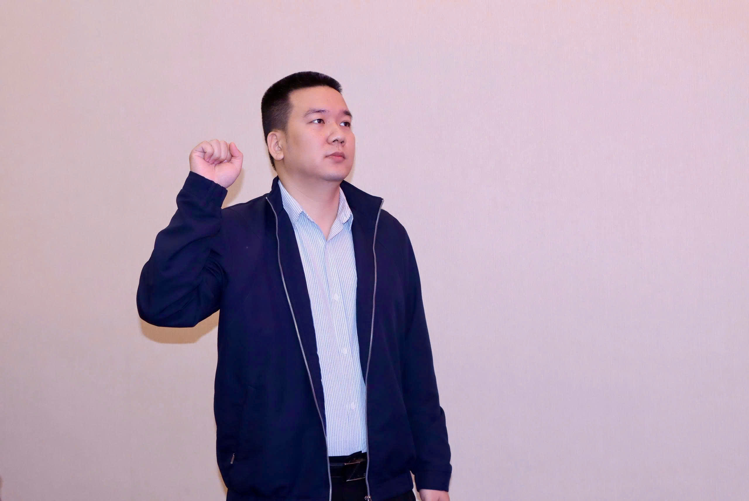 và đồng chí Lê Nhật Minh đọc lời tuyên thệ trước Quốc kỳ, Đảng kỳ và chân dung Chủ tịch Hồ Chí Minh